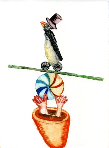 Kleiner Tierfreund | The two of us | Master of balance - Tetrapack-Radierung - gerahmt 30x24 cm
